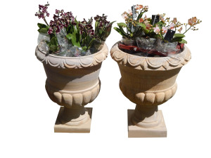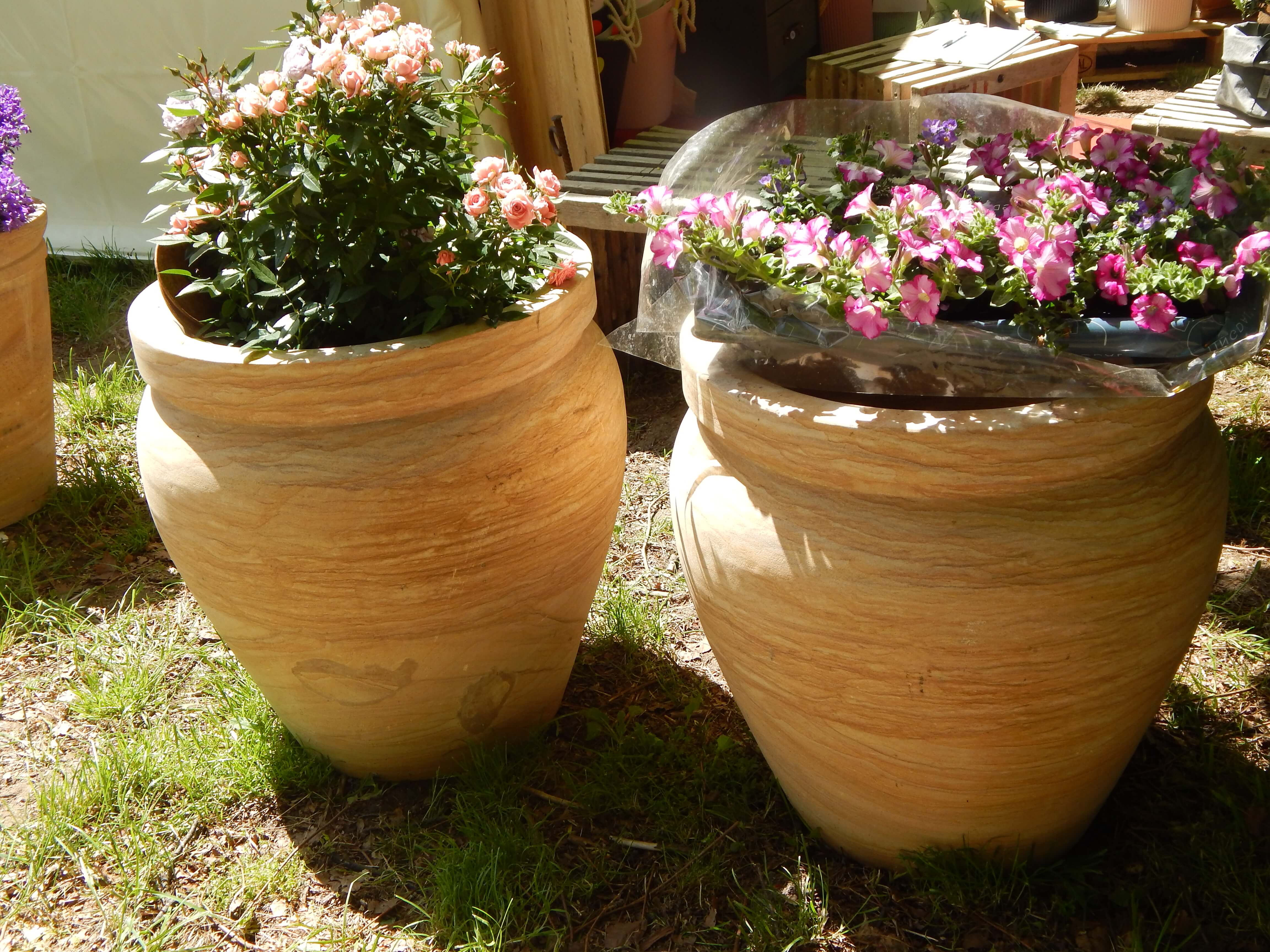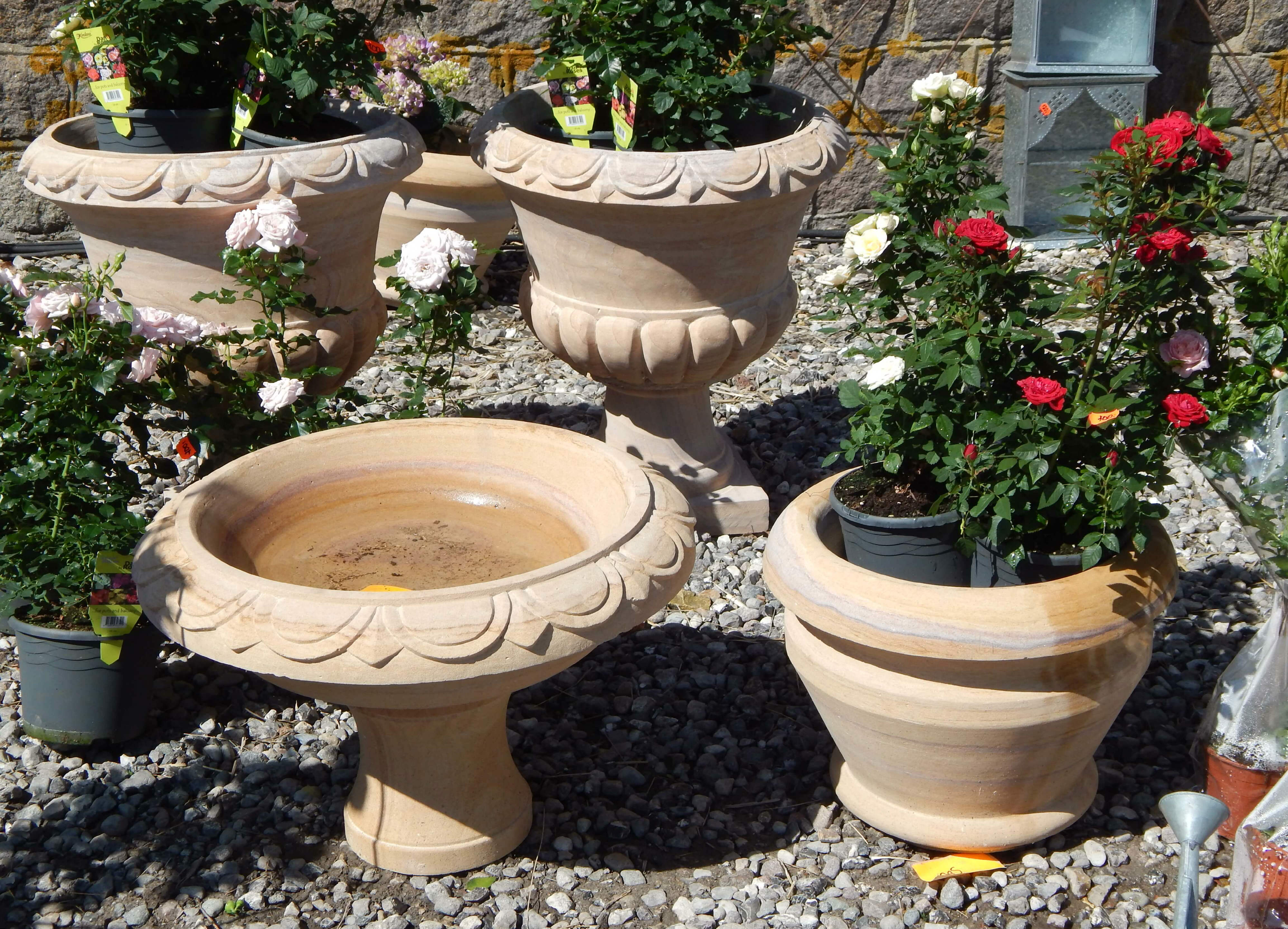 Khannas large sandstone pots can be seen at Tivoli and Ledreborg Slot Park.